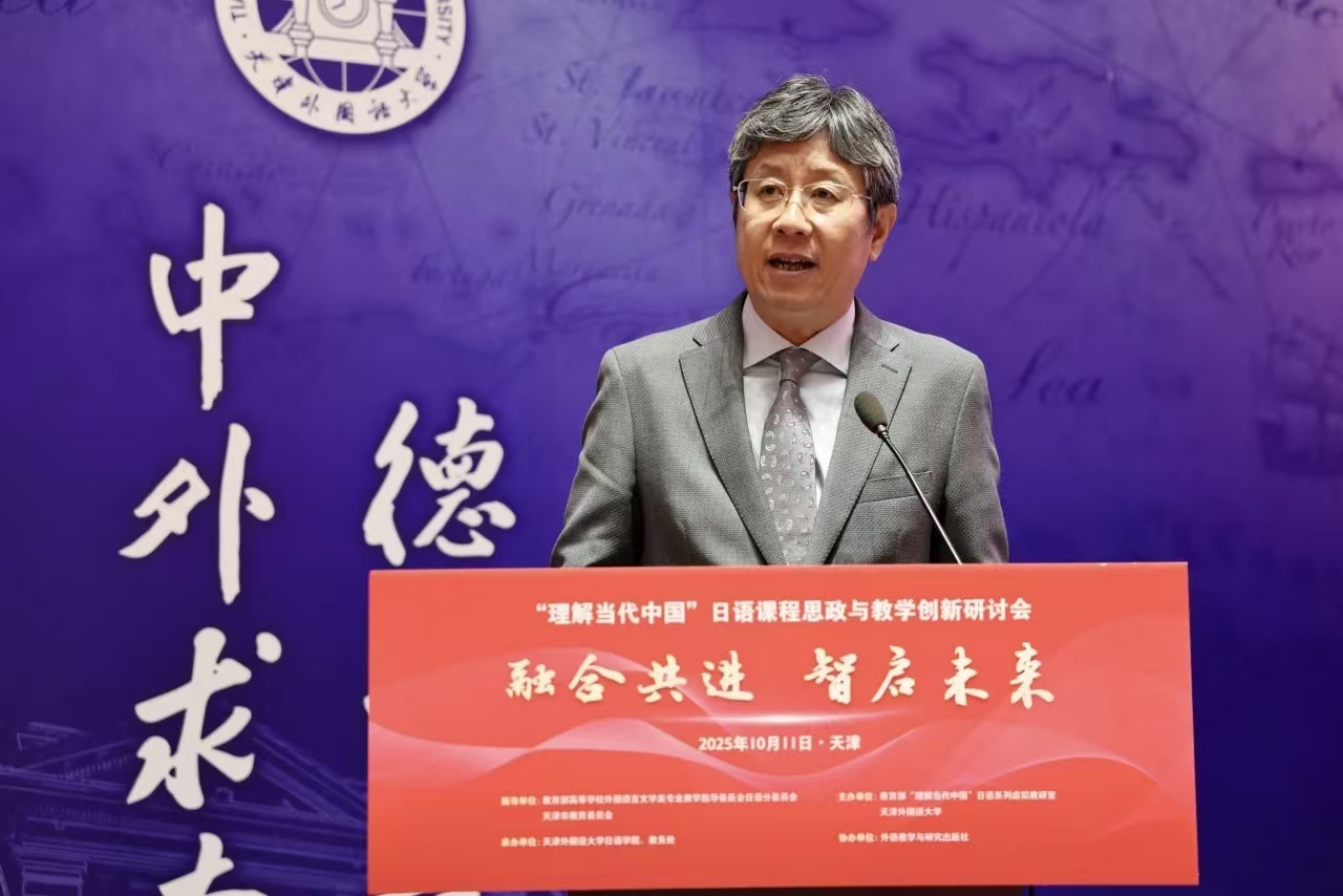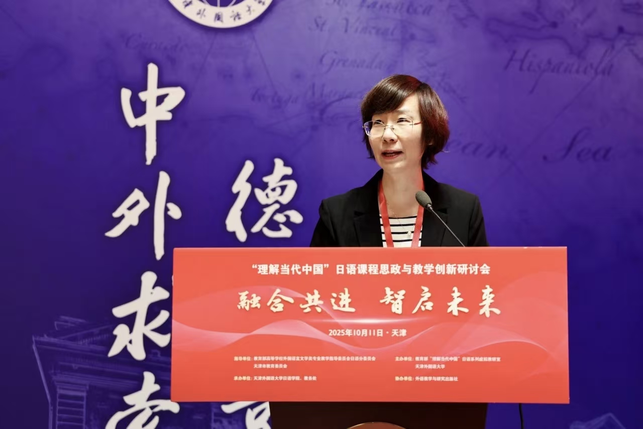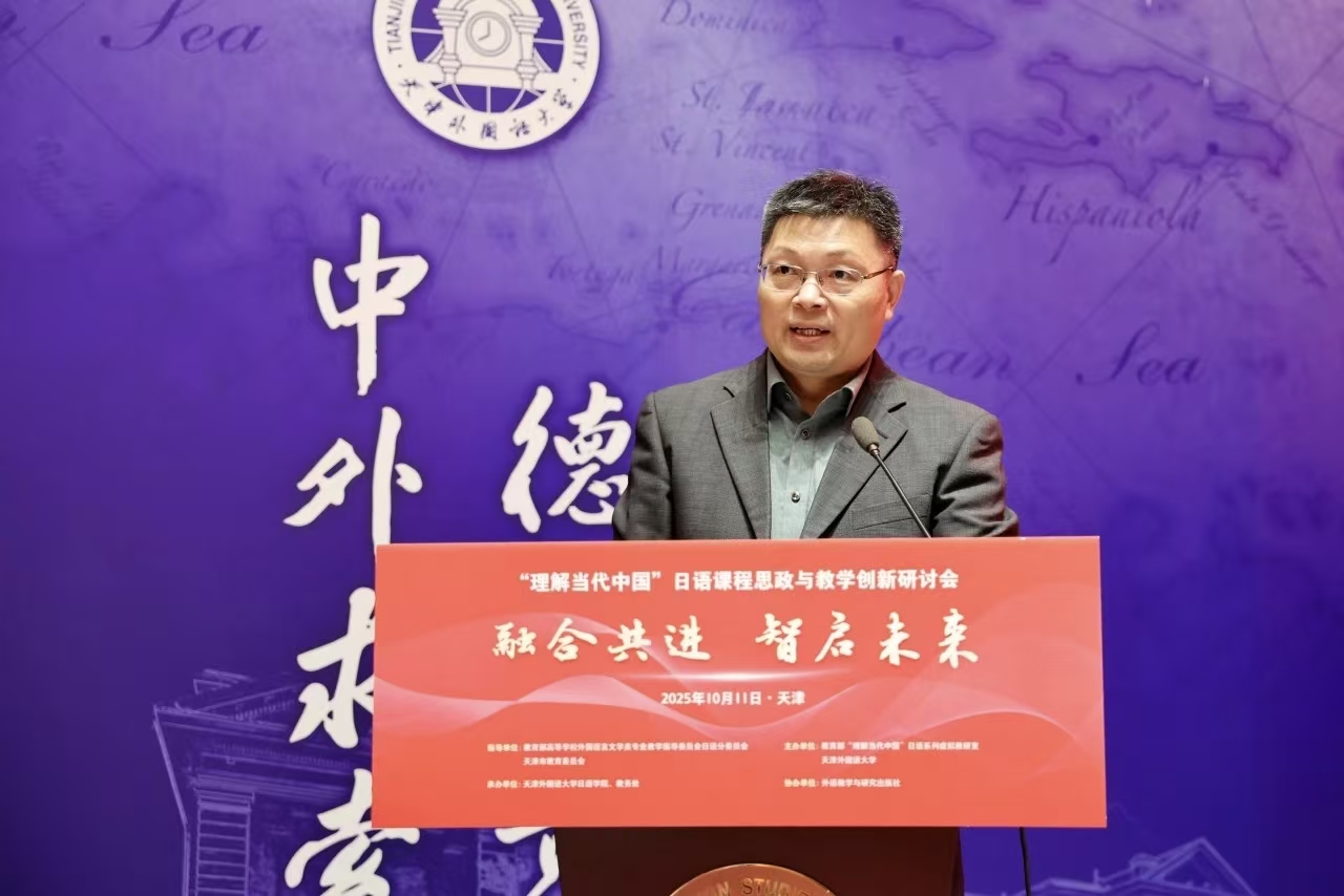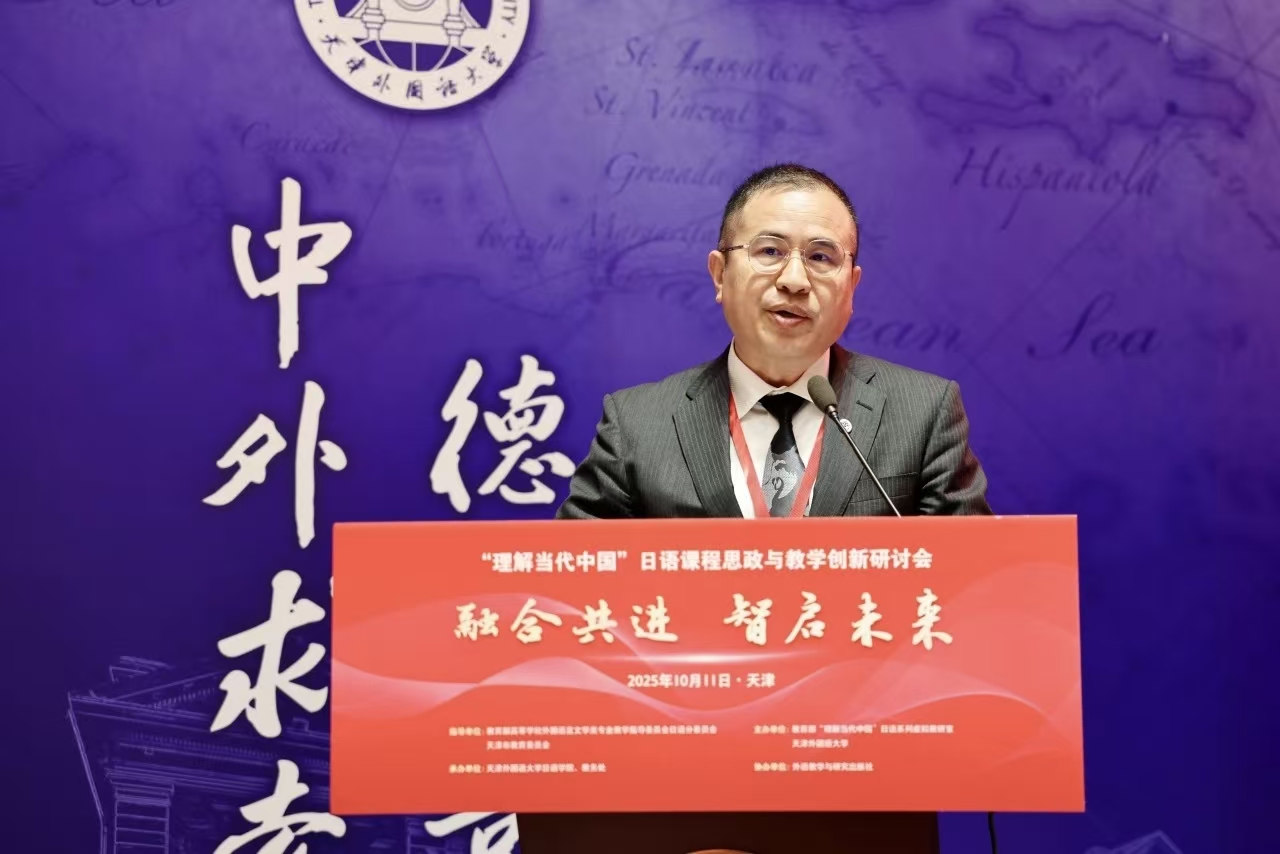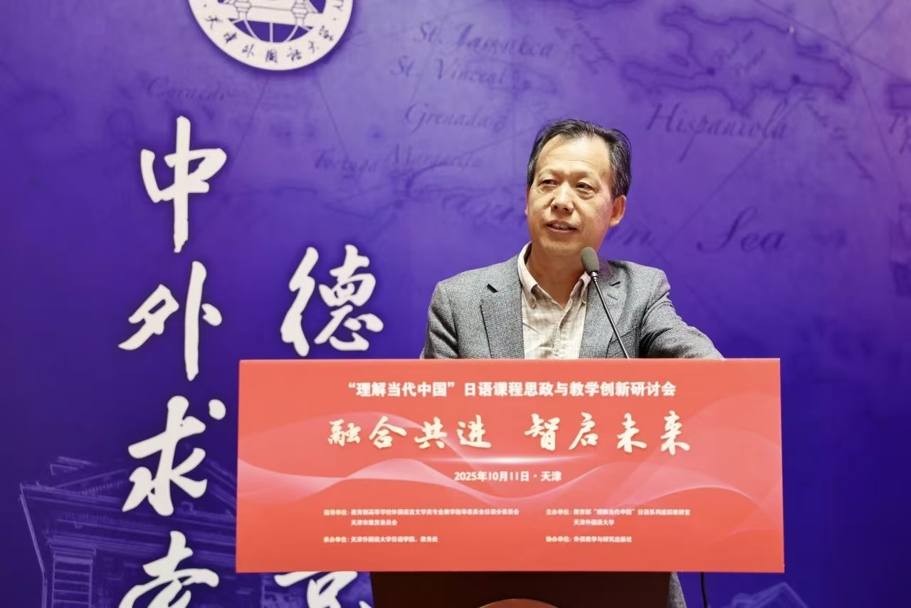 周异夫在致辞中指出,“理解当代中国”日语系列教材与课程的建设,是推动新时代日语专业教学理念创新与课程体系升级的关键举措。他对天津外国语大学“理解当代中国”日语系列虚拟教研室平台建设取得的成效给予高度评价,期待该平台持续发挥引领作用,进一步助力全国高校日语教学改革与创新发展。