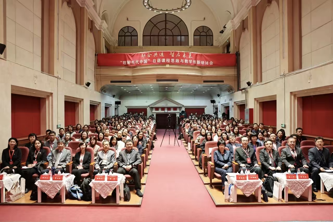 10月11日,融合共进、智启未来——“理解当代中国”日语课程思政与教学创新研讨会在天津外国语大学举办。本次研讨会由教育部高等学校外国语言文学类专业教学指导委员会日语分委员会、天津市教育委员会指导,教育部“理解当代中国”日语系列虚拟教研室、天津外国语大学主办,天津外国语大学日语学院、教务处承办。天津外国语大学校长李迎迎,天津市教育委员会高教处处长徐震,教育部高校外教委主任委员、“理解当代中国”系列虚拟教研室协作组组长、北京外国语大学原副校长孙有中教授,中国国际贸易学会日语与国际商务专业教学研究委员会名誉主任委员、北京外国语大学日语学院院长、北京日本研究中心主任周异夫,中国国际贸易学会日语与国际商务专业教学研究委员会主任委员、广东外语外贸大学日语语言文化学院名誉院长、东方学研究院院长陈多友,外研社党委副书记、副董事长、副总编辑常小玲出席开幕式并致辞。教育部高校外教委日语分委会副主任委员、大连大学原副校长宋协毅,天津外国语大学副校长朱鹏霄,以及来自北京外国语大学、上海外国语大学、广东外语外贸大学、四川外国语大学、西安外国语大学、北京第二外国语学院、天津外国语大学、大连外国语大学、浙江外国语学院、东北林业大学、浙江师范大学、天津理工大学、河北工业大学、天津科技大学、天津中医药大学、国际关系学院、外语教学与研究出版社等44所高校、机构的领导、专家及师生参会。开幕式由天外教务处处长王济军主持。