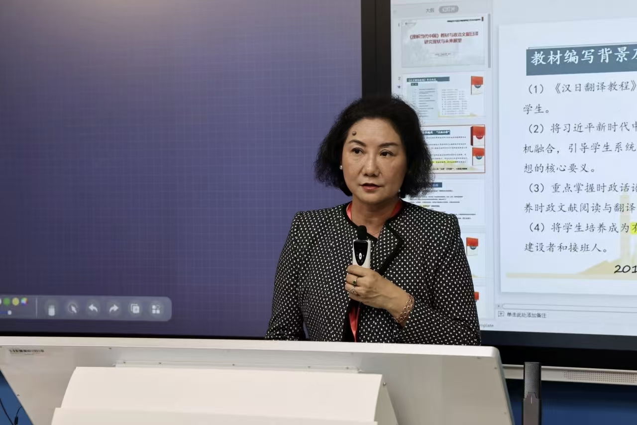 李迎迎向莅临研讨会的各位专家学者、教育同仁表示欢迎。她指出,本次研讨会以《理解当代中国》日语系列教材为依托,聚焦“课程思政与日语教学的深度融合”这一关键议题,旨在通过深入的理论研讨、生动的教学展示和坦诚的实践交流,共同探索如何将价值塑造、知识传授和能力培养融为一体,如何在外语教学中有效引导学生深刻理解当代中国的发展道路、制度优势和文化精髓,从而探索出一条外语教育更好服务国家国际传播能力建设的新路径。