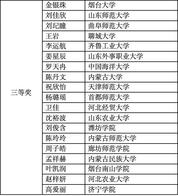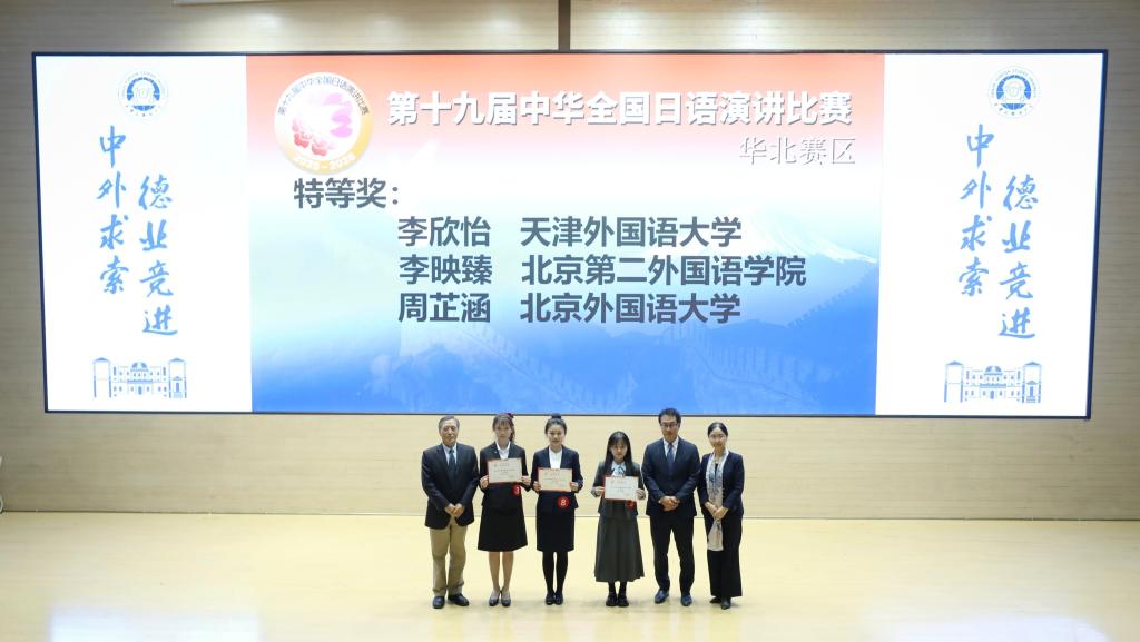 经过激烈的角逐,天津外国语大学李欣怡、北京第二外国语学院李映臻、北京外国语大学周芷涵三名选手荣获特等奖。荣获特等奖的三位选手将代表华北赛区参加全国总决赛。