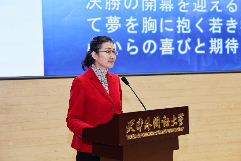 天津外国语大学日语学院院长席娜、中国教育国际交流协会高等教育合作部主任刘轶博、日本经济新闻社国际事业局事业开发部长叶山佳代子、中日学术交流中心(日本华人教授会议)代表、鹿儿岛国际大学康上贤淑教授出席活动并致开幕词。