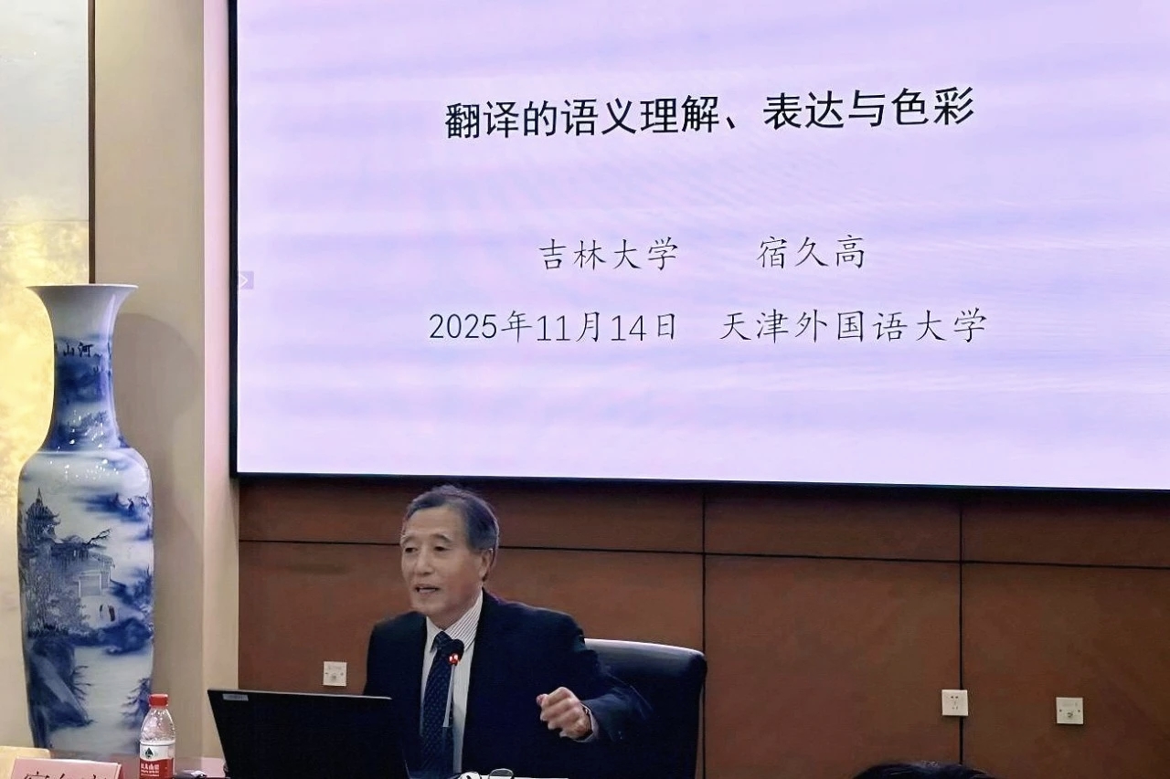 吉林大学宿久高教授以“翻译中的语义理解、表达与色彩把握”为核心议题,融合功能语言学及相关翻译理论框架,结合具体译例与篇章,从理论阐释与实践解析双向切入,引导同学们共同探讨翻译学习中的重点与难点,旨在为提升翻译实践能力、深化语言运用意识、增强文学文化素养提供理论参照与实践启发。